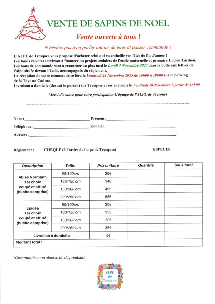 ALPE : N’attendez plus, commandez votre sapin