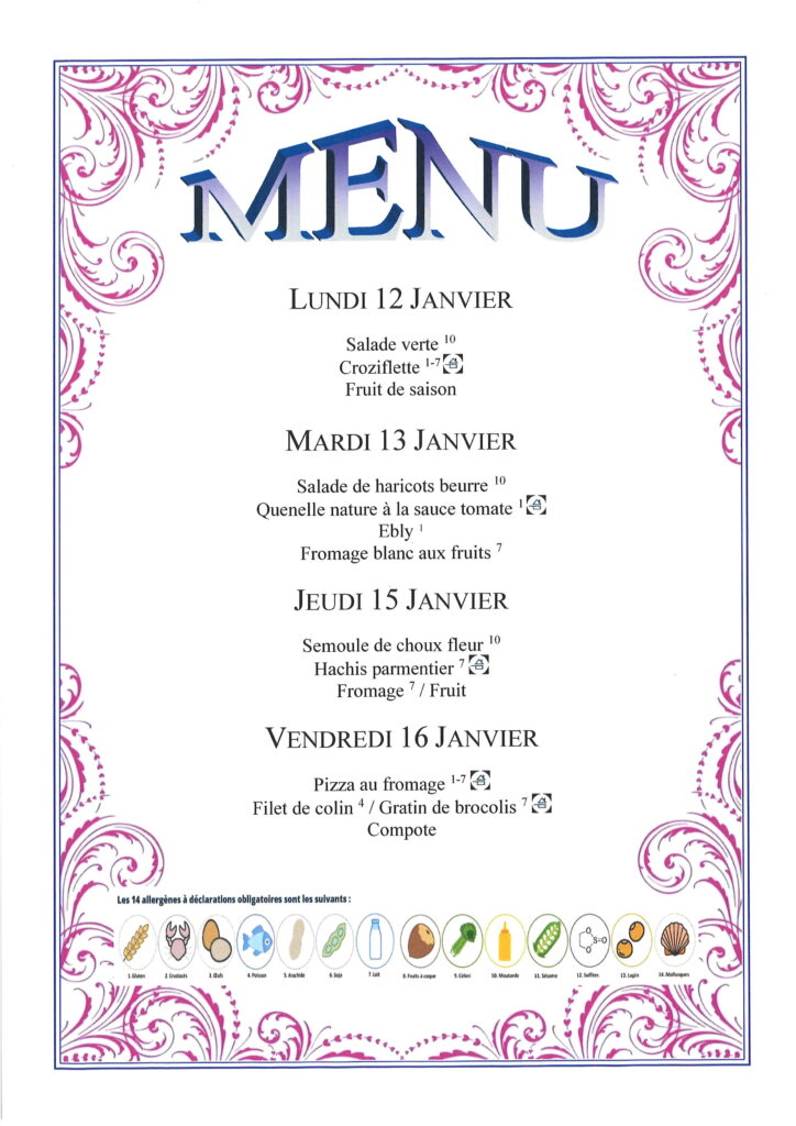 Les allergies, les intolérances alimentaires attestées médicalement doivent être signalées à la mairie (auprès de Mme Magali NIZIER au 06.85.10.85.77) et à l’école.